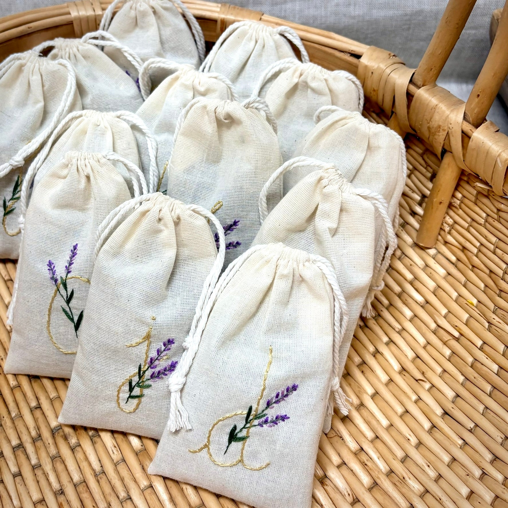 Hand Embroidered Lavender Pouch Set